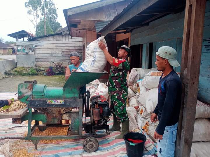 Dairi24jam || SumbulDalam rangka mendukung program pemerintah mewujudkan ketahanan pangan, Babinsa Koramil 01/Sumbul Kodim 0206/Dairi Serda Jasa Ranto Simamora melaksanakan pendampingan kegiatan penggilingan jagung bersama dengan warga binaan Bapak Luter pakpahan di Desa Pegagan julu 3 Kecamatan Sumbul Kabupaten Dairi,Senin (22/5/2023) .