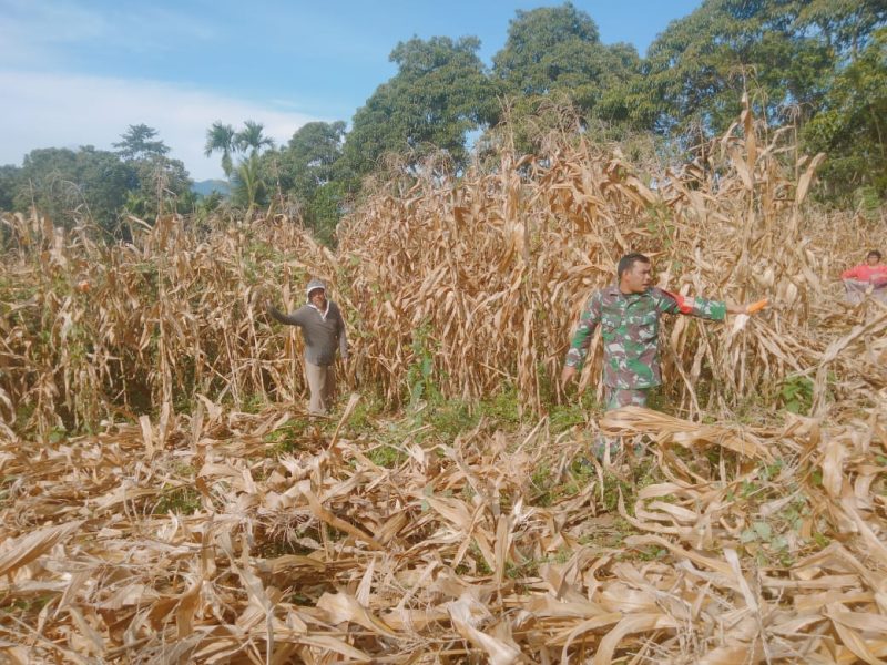 Wujudkan Ketahanan Pangan,Babinsa Koramil 05 Tanah Dampingi Panen Jagung .