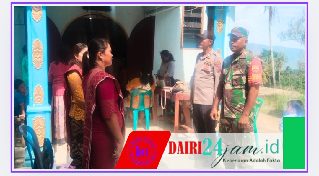 Dairi24jam|| Tanah Pinem- Guna memberikan rasa aman dan nyaman kepada umat Nasrani saat Ibadah hari Minggu, Serma Syahrizal Umri Babinsa Koramil 05/Tanah Pinem  Kodim 0206/ Dairi bersama Bhabinkamtibmas melaksanakan pengamanan di Gereja GBKP Kutabuluh Kecamatan Tanah Pinem Kabupaten Dairi, Minggu(12/10/2025).